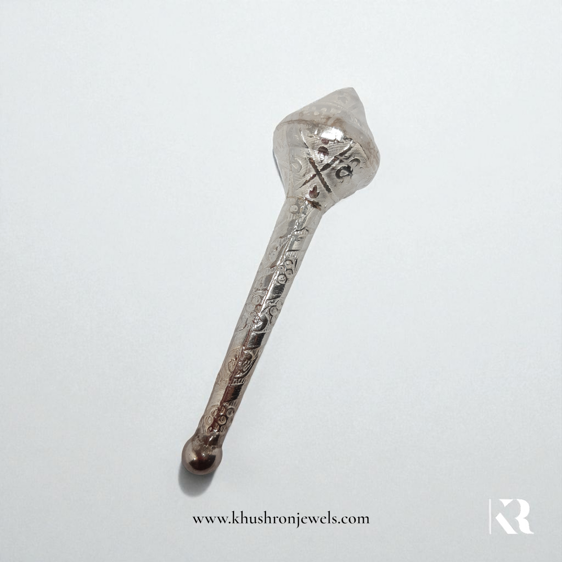 This finely crafted Hanumanji gada is made from pure 925 silver, featuring intricate engraving along the length and head. Symbolizing strength, devotion, and protection, it is a powerful addition to your home temple or pooja space, and makes an auspicious gift for religious occasions.