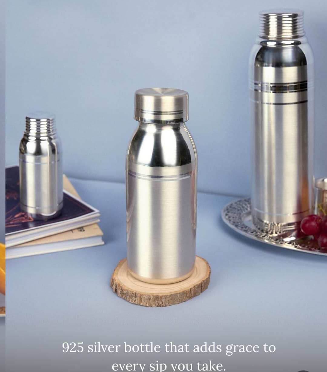 Experience the perfect blend of elegance and health benefits with our pure 925 silver water bottles. Crafted from authentic sterling silver, these bottles offer natural antimicrobial properties, keeping your water fresh and pure. Designed for daily use, they feature a sleek, polished finish that complements any lifestyle—ideal for office, gym, or travel. The secure screw-on lid ensures leak-proof convenience, while the durable silver protects against wear and odors. These silver bottles also make a unique and thoughtful gift for those who appreciate luxury and wellness. Carry a piece of art and health wherever you go with these premium 925 silver water bottles.