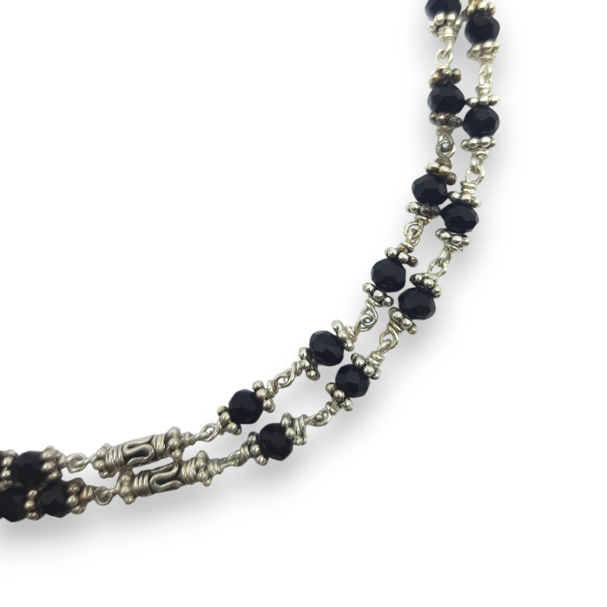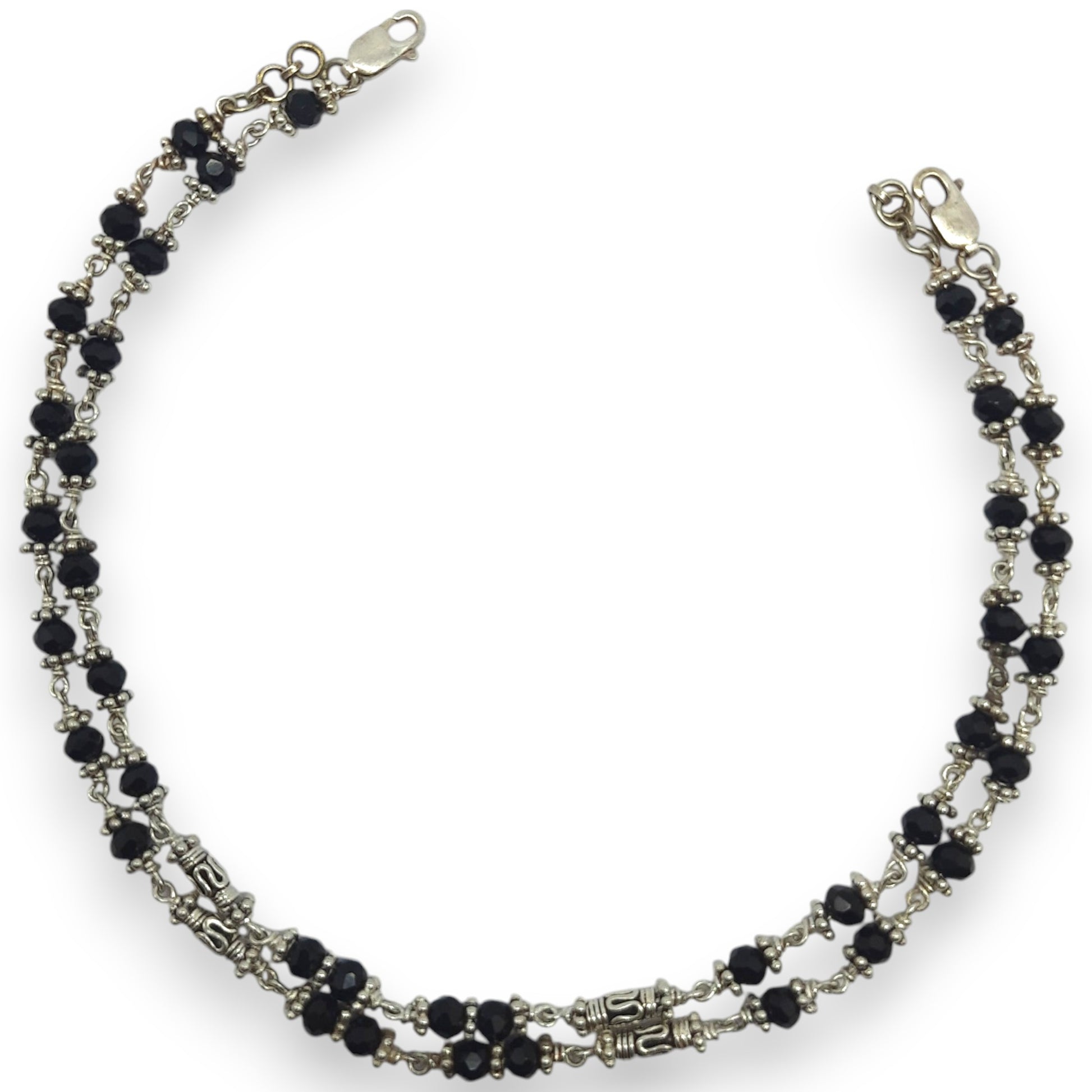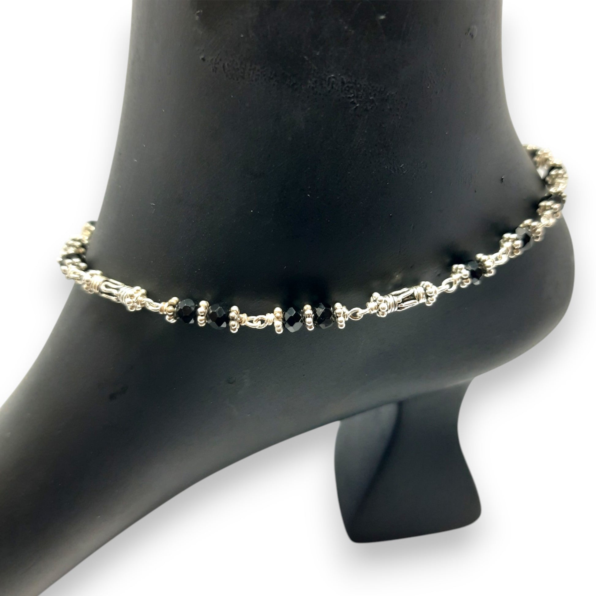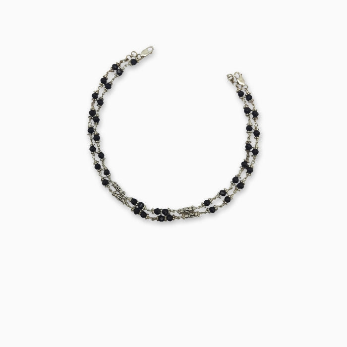 Crafted with spiritual symbolism, the Blessed Beads Anklet features a blend of polished black beads and fine silver artistry. A meaningful piece designed to bring positivity, grace, and tradition to your jewellery collection.
