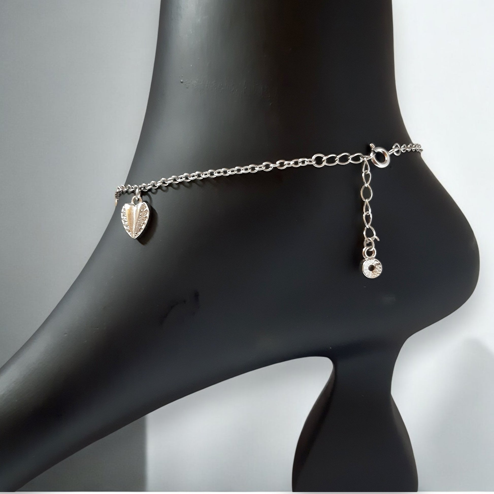 Add playful elegance to your ankle with our Dual Charm Silver Anklet, featuring a charming combination of mini heart and teardrop-shaped danglers. Handcrafted in premium sterling silver, this lightweight anklet is adorned with high-polish beads that catch the light beautifully, while the hanging motifs, a textured heart and a floral-inspired drop, add delicate movement and feminine flair. Whether worn solo or layered with other anklets, it’s a versatile accessory that transitions seamlessly from daily wear to festive occasions. The adjustable clasp ensures a perfect fit, making it a thoughtful gift or a personal favorite.