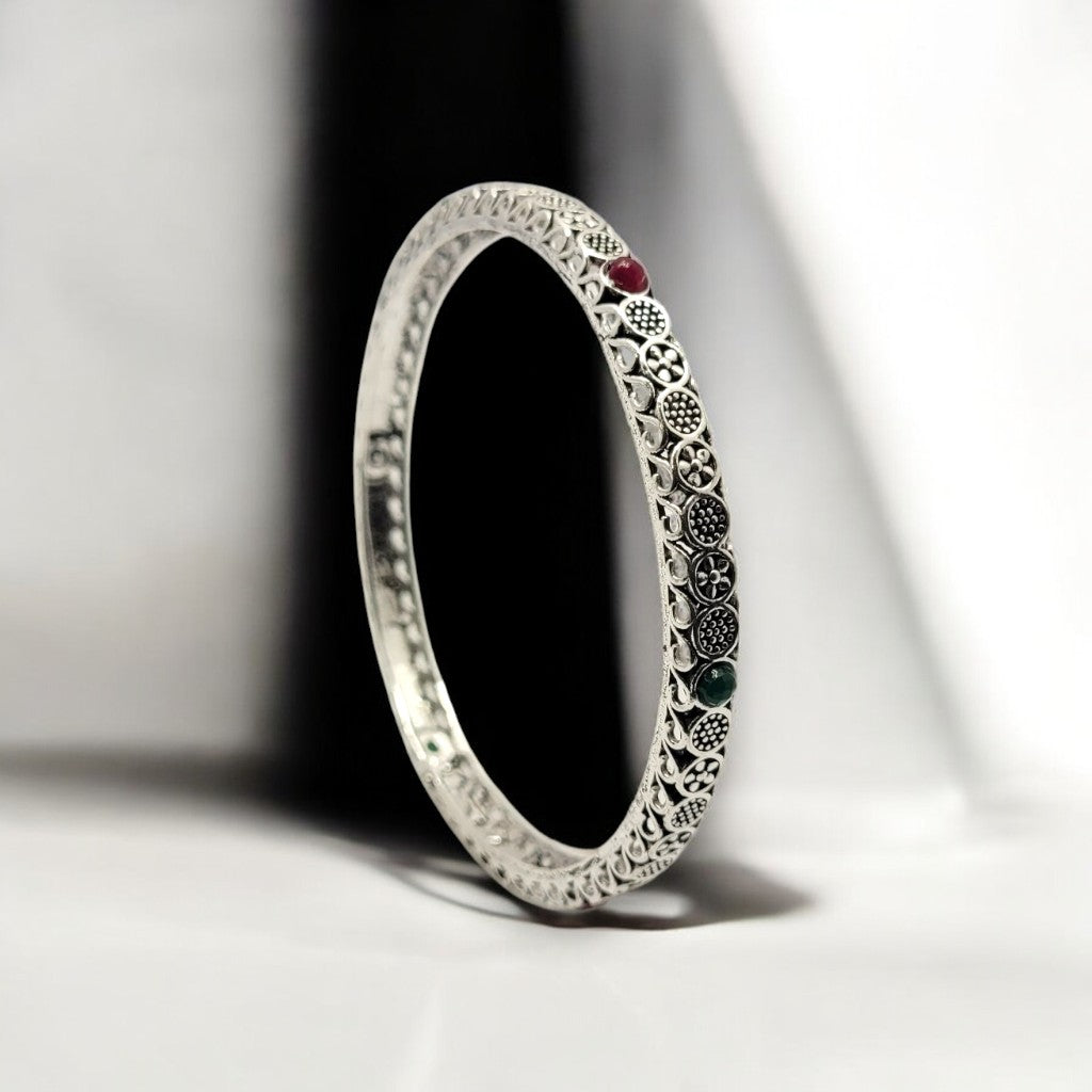 Add a touch of grandeur to your jewellery collection with this Ornate Silver Bangle Set, designed to captivate with its intricate detailing and timeless elegance. Each bangle features elaborate patterns and fine craftsmanship, creating a stunning blend of traditional artistry and refined sophistication.