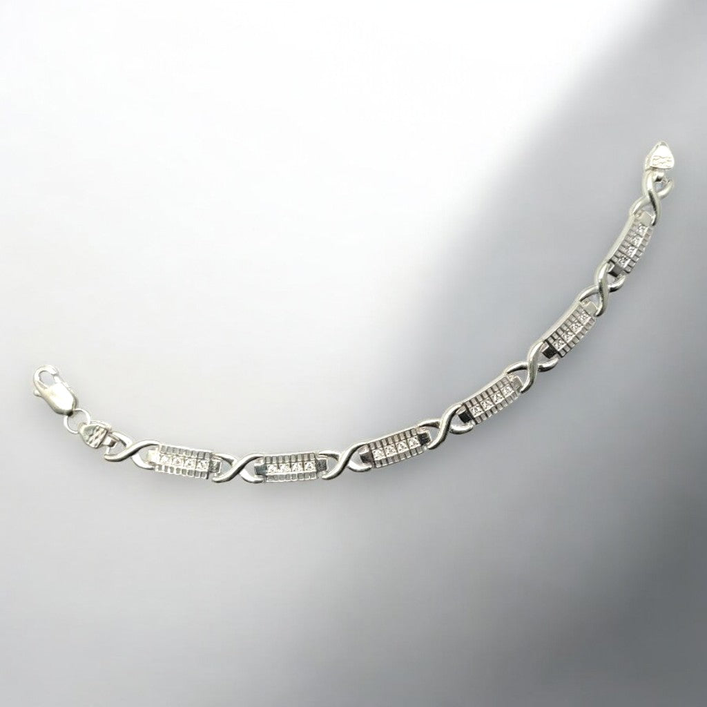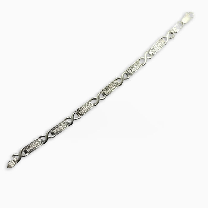 This modern and edgy bracelet features a contemporary infinity link design with shining zirconia. It's a perfect accessory for the fashion-forward man who wants to make a statement.