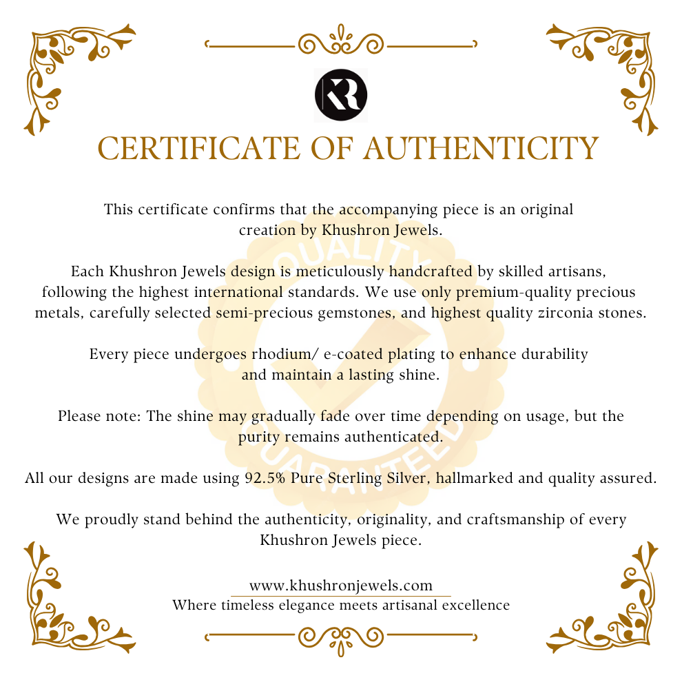 This website is operated by Khushron Jewels. Throughout the site, the terms “we”, “us” and “our” refer to Khushron Jewels. Khushron Jewels offers this website, including all information, tools and Services available from this site to you, the user, conditioned upon your acceptance of all terms, conditions, policies and notices stated here.