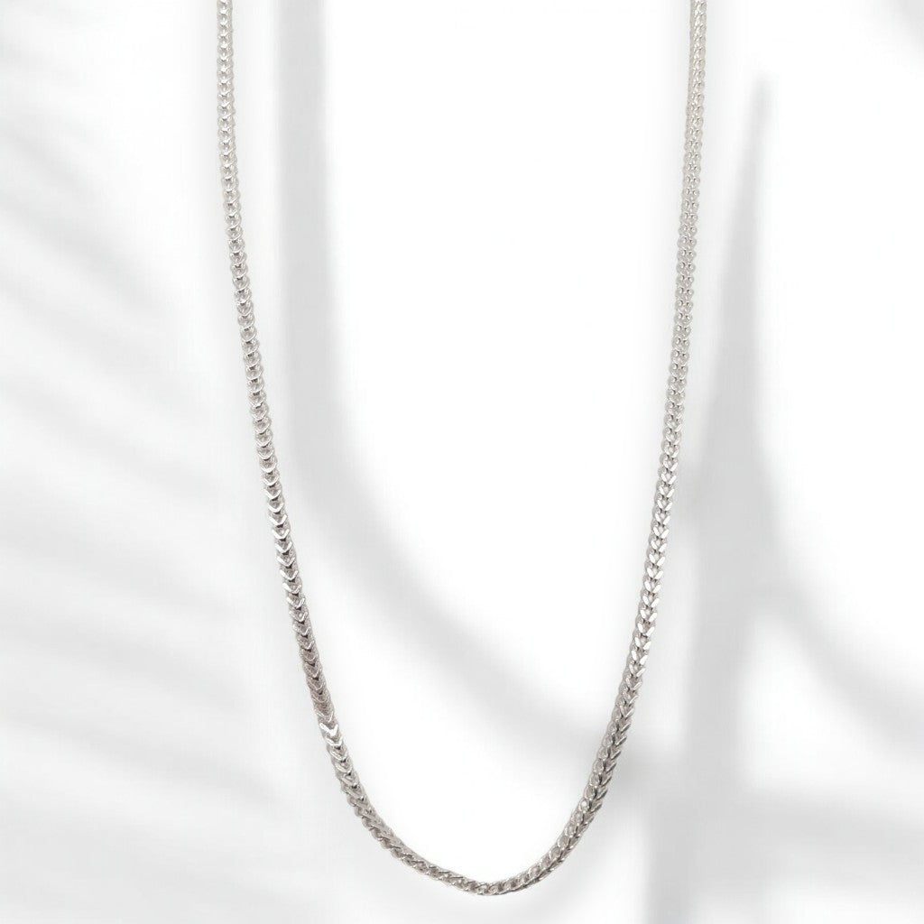 The Phantom Woven Silver Chain is a testament to expert craftsmanship. With its intricate interlocked links, this chain offers both strength and sophistication. Perfect for layering or wearing solo.
