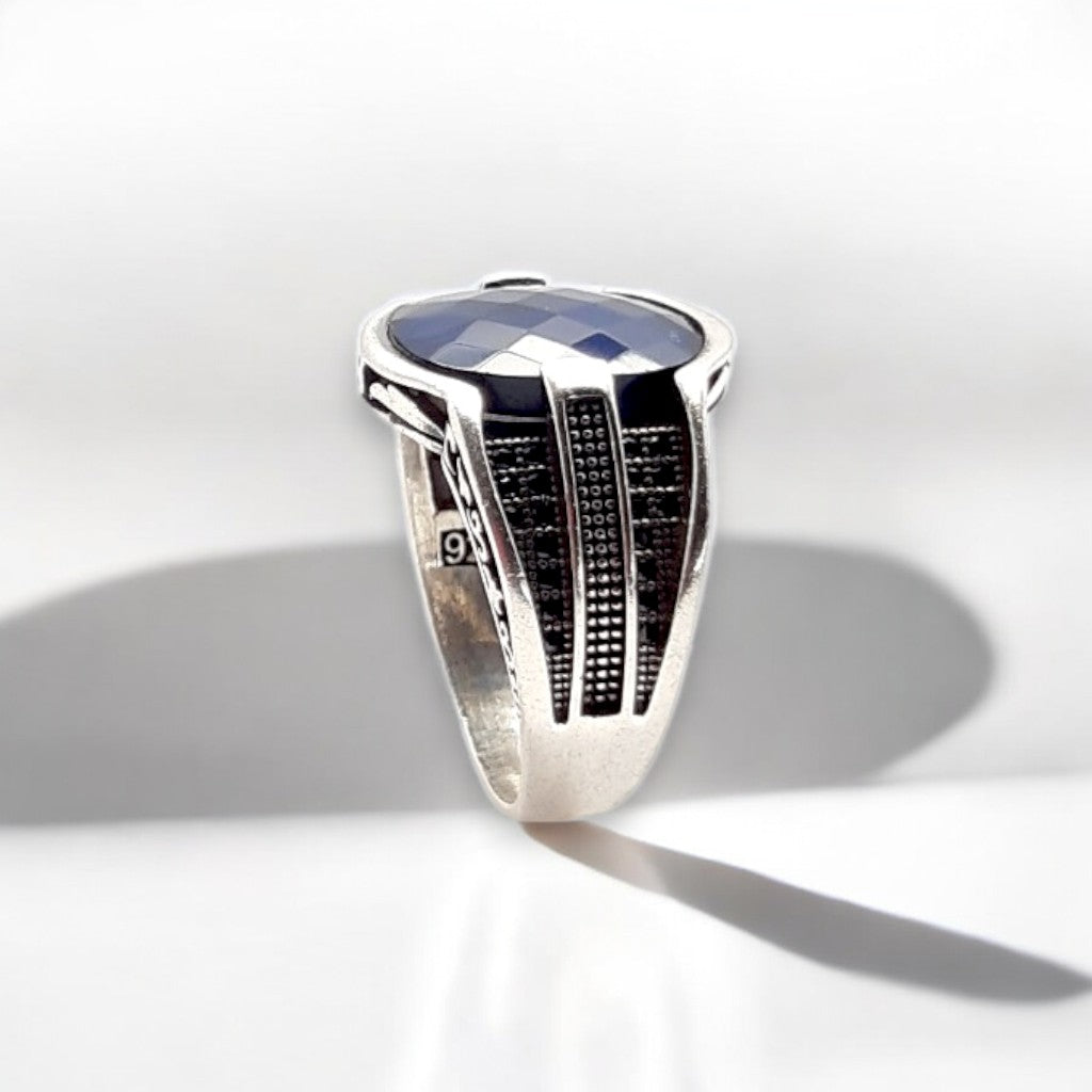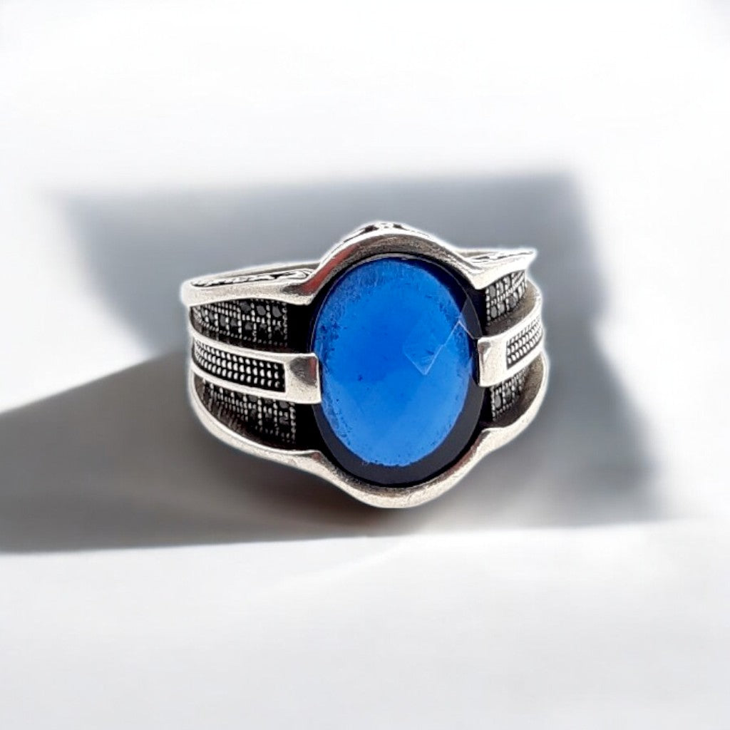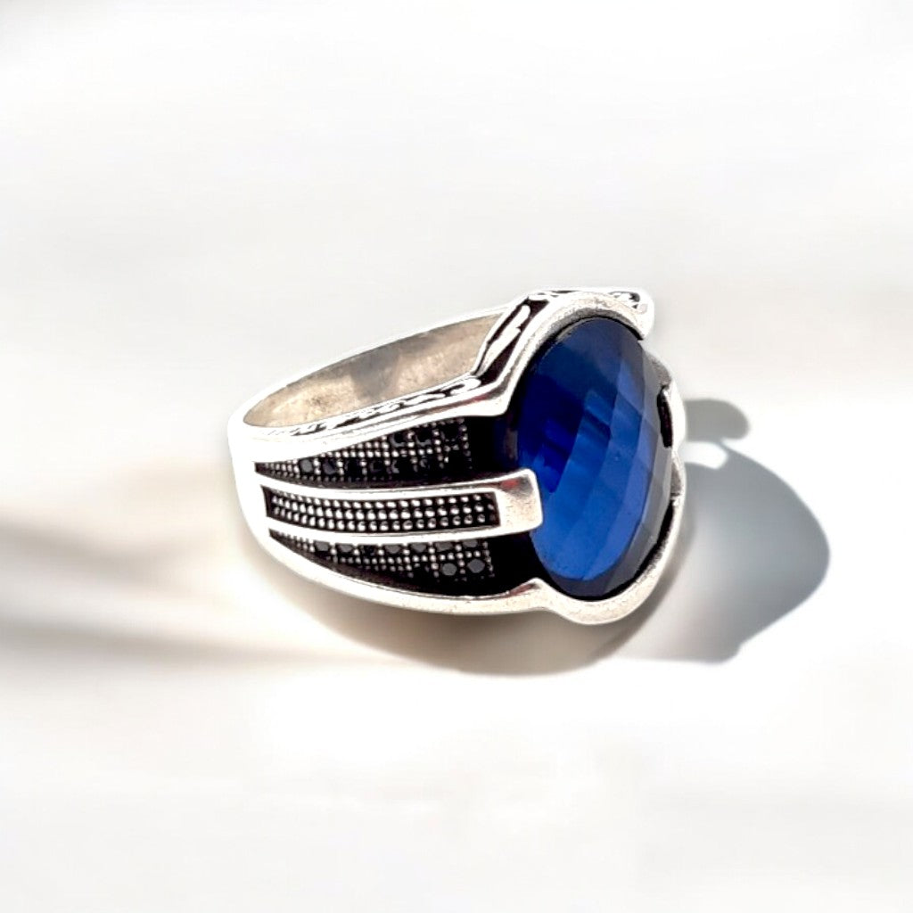 Claim the mantle of a sovereign with the Monarch Ring. Its deep blue stone, faceted to capture the light, embodies a sense of profound mystery and unwavering resolve. This ring commands presence, a symbol of raw masculinity and regal inspiration. It's for the man who embodies the strength of vision, who appreciates the enduring power of timeless design.