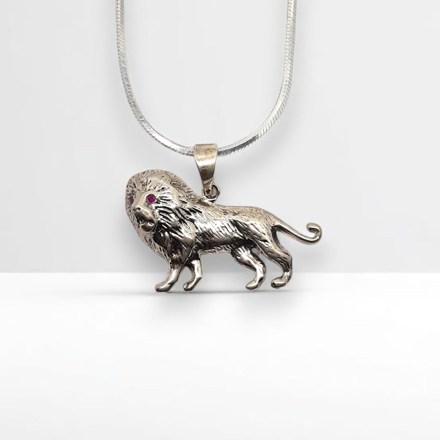 Unleash bold energy and regal strength with the Roaring Majesty Lion Men's Pendant by Khushron Jewels. Handcrafted in pure 925 silver with a striking ruby-red eye detail, this pendant embodies courage, leadership, and protection. The lion — king of the jungle — is a timeless symbol of fearlessness and personal power. Wear it as a bold statement of your inner strength and unshakable confidence.