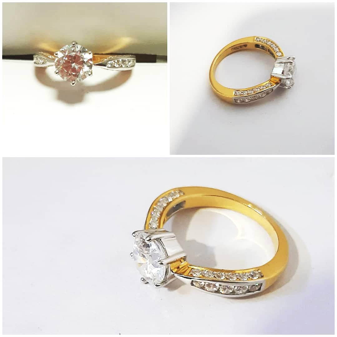 This stunning women’s ring features a brilliant round-cut center, set against a contrasting two-tone band. The band is adorned with sparkling brilliance and enhancing the elegance of the design. The combination gives the ring a luxurious and modern look, making it perfect for any occasion. Whether as an engagement ring or a sophisticated accessory for a night out, this classic piece will capture attention and add timeless beauty to your jewellery collection.