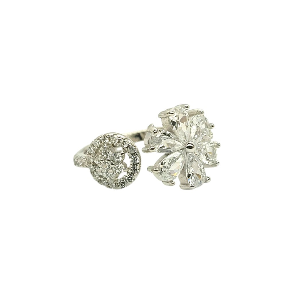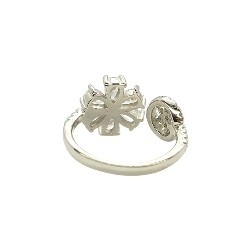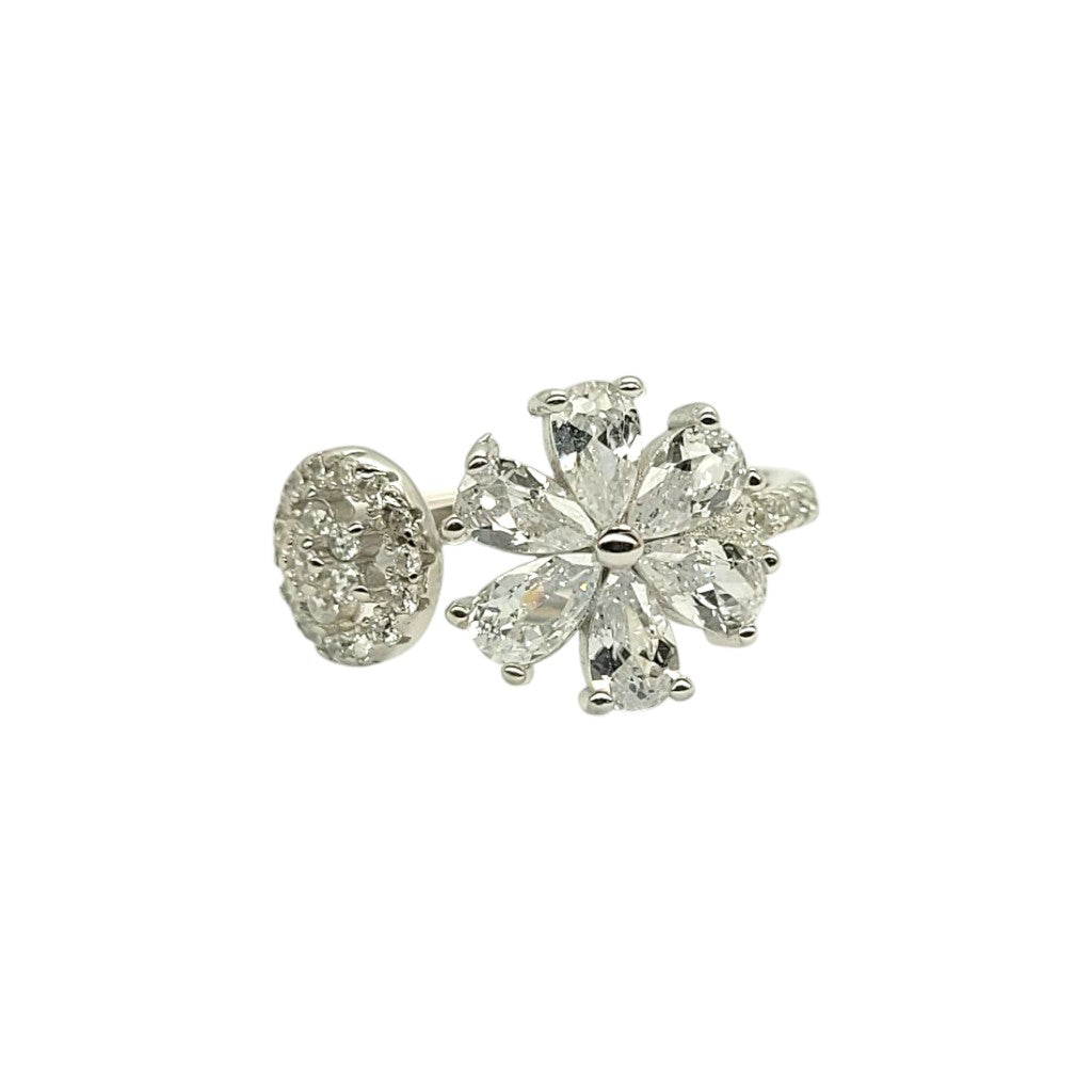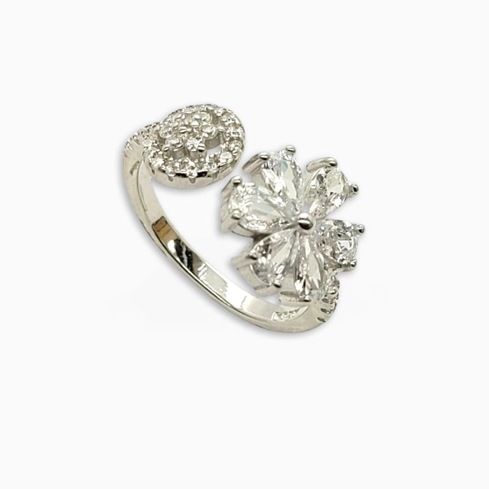 Experience the radiant beauty of the Radiant Floral Open Ring. This exquisite piece showcases a captivating flower design with sparkling crystals that radiate light. The open band allows for easy wear and a touch of effortless elegance. A perfect accessory for any occasion.