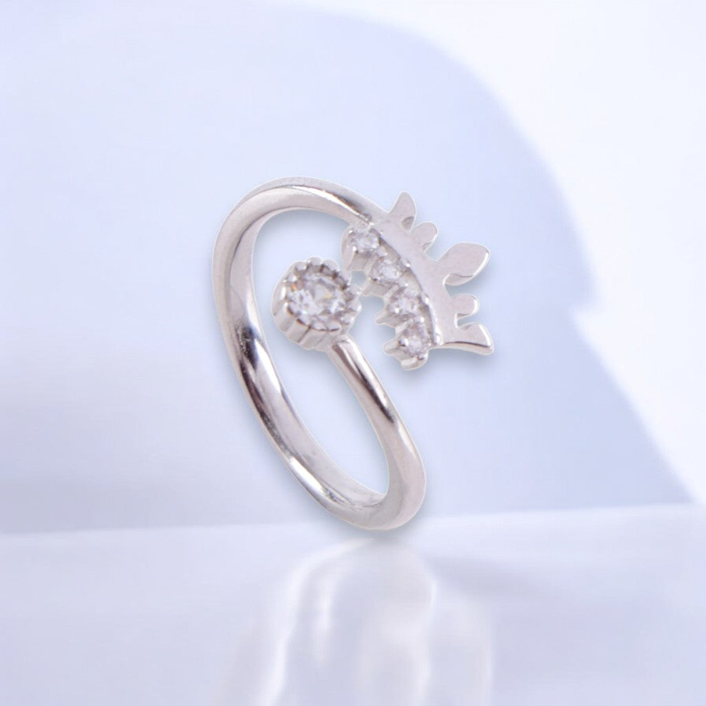This whimsical sterling silver ring features a charming crown design adorned with sparkling zirconia stones, adding a touch of fairy-tale magic to your everyday look.