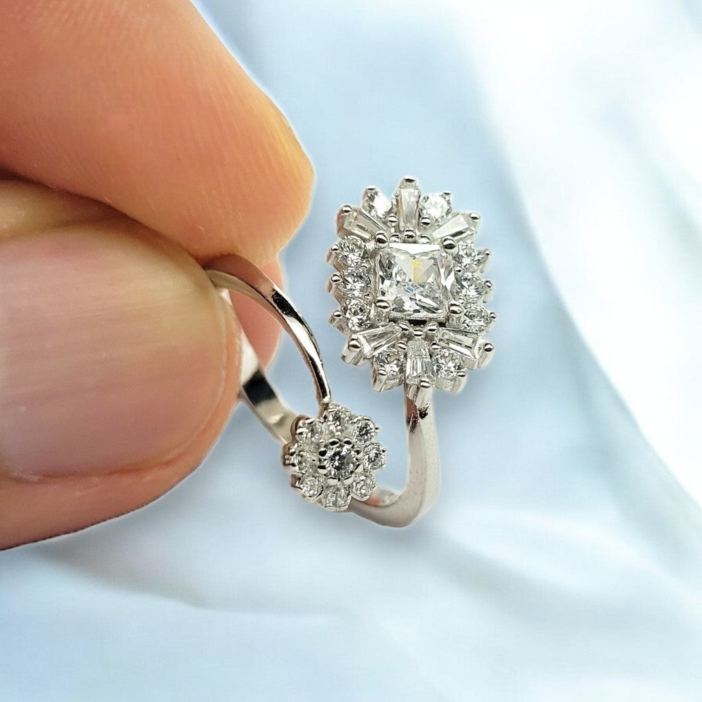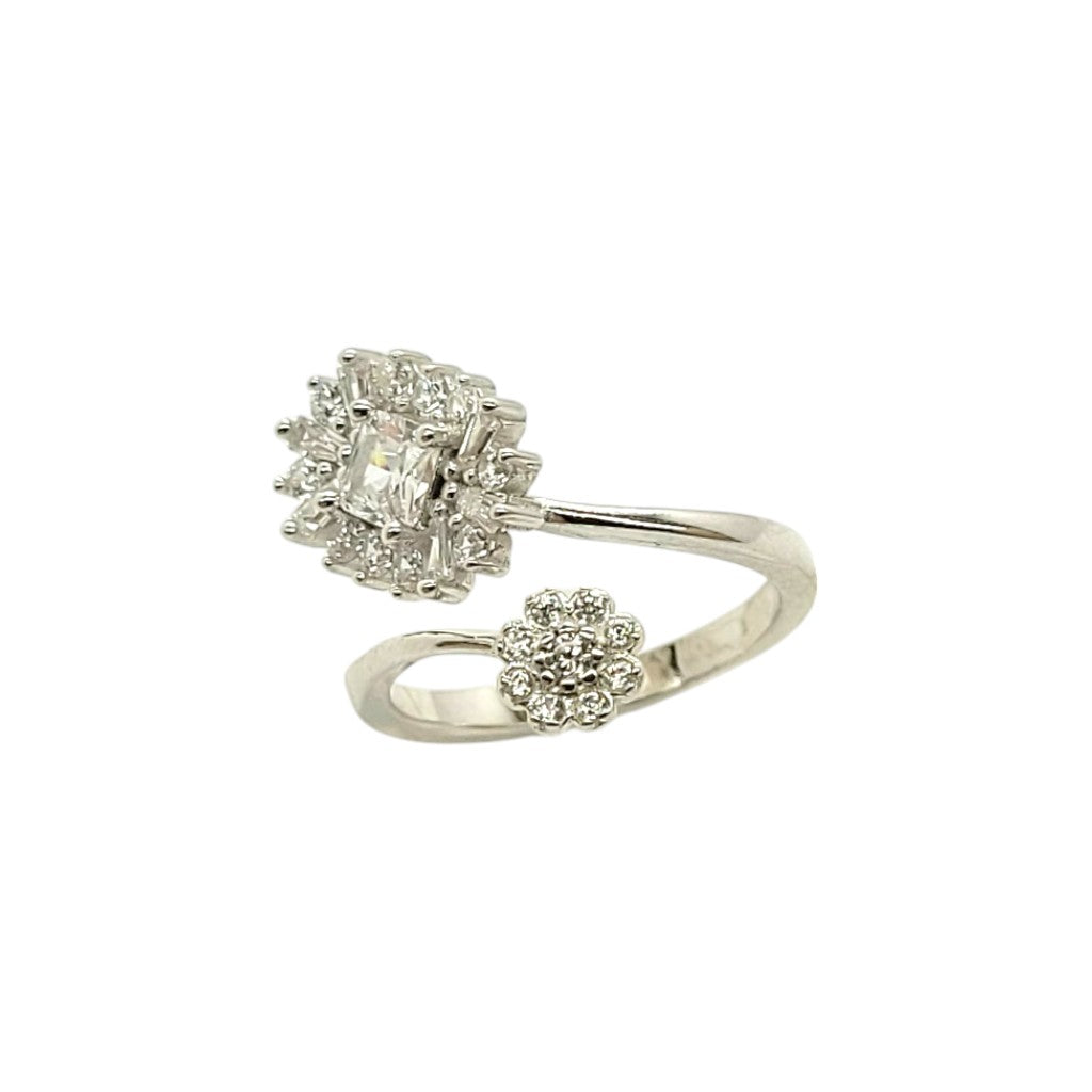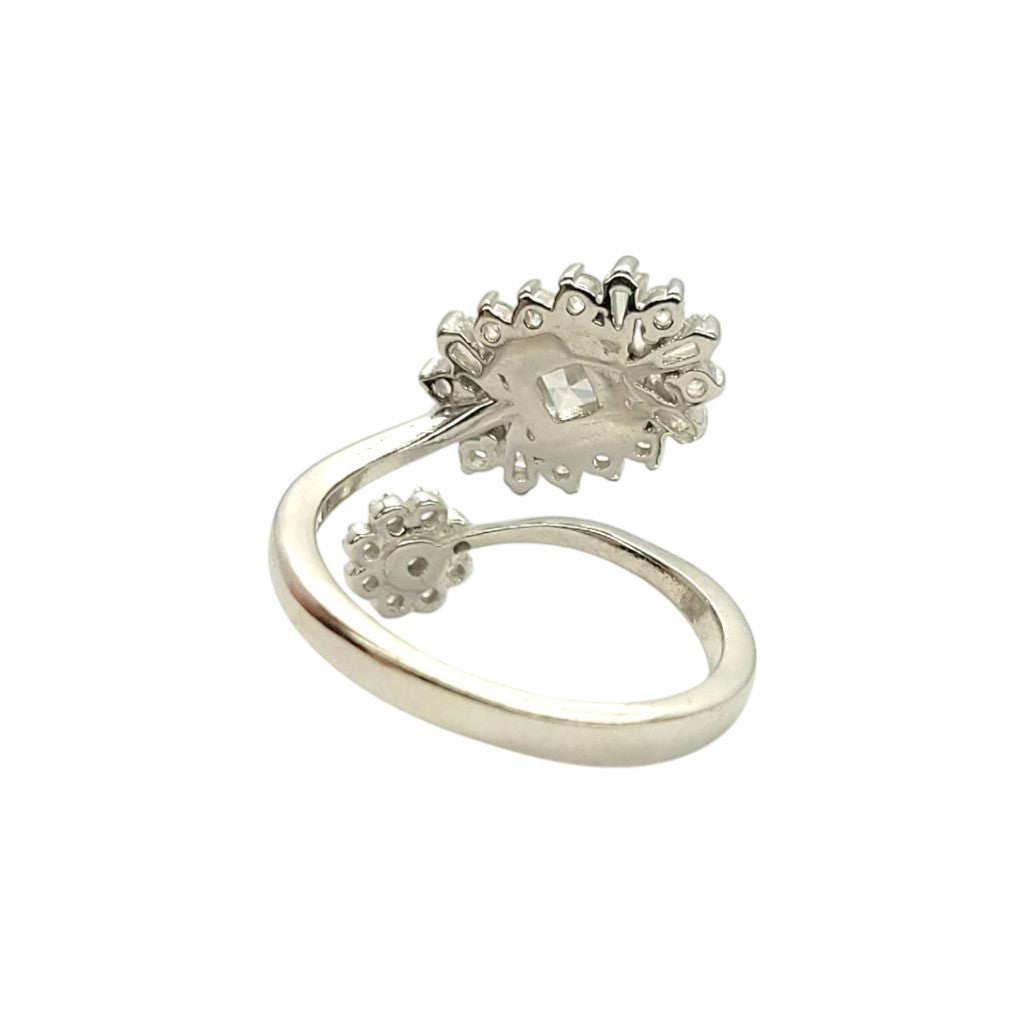 A graceful intertwining of nature and sparkle, the Twilight Petal Ring features a glistening floral duo, where brilliant-cut and baguette diamonds come together in a delicate, ethereal embrace.