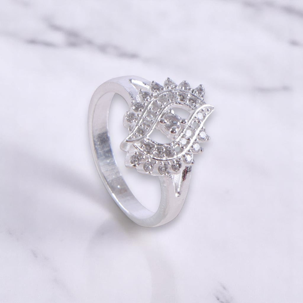 This striking sterling silver ring features a swirling design that resembles a whirlwind, encrusted with sparkling zirconia stones. It's a bold and captivating piece that demands attention.
