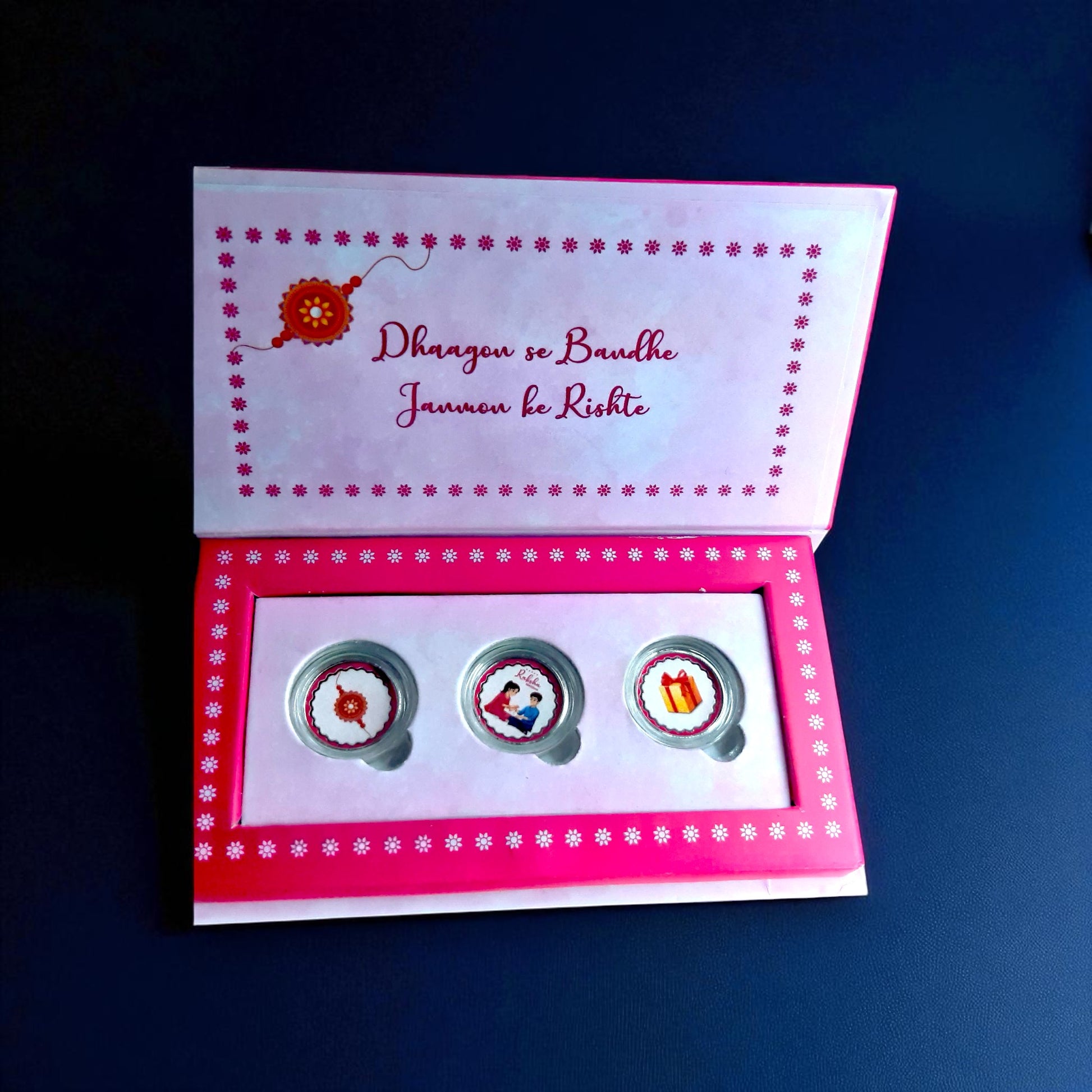 Perfect for festive gifting, the Rakhi Silver 3g Coin blends tradition with luxury, beautifully packaged for a memorable unboxing experience. Whether you’re sending Rakhi blessings across India or worldwide, this silver coin stands out as a timeless token of affection that truly honors the occasion.