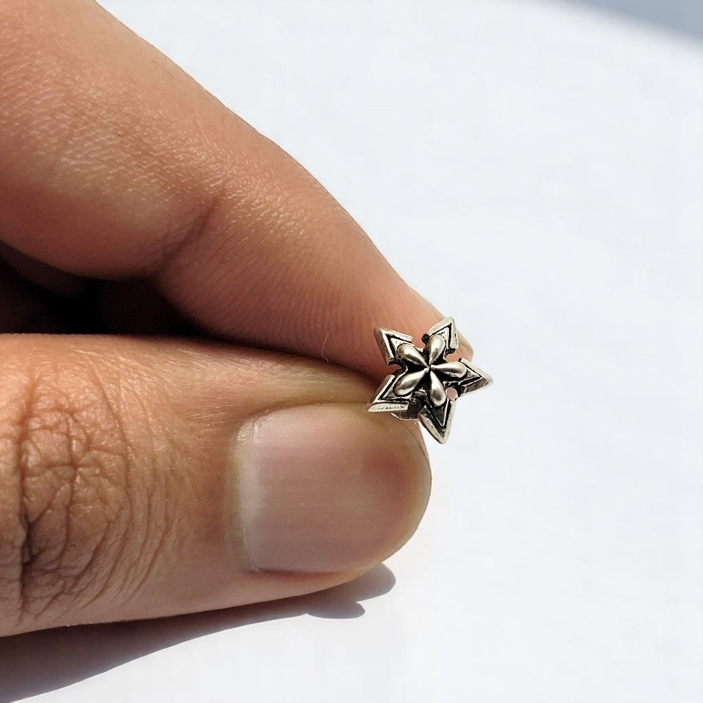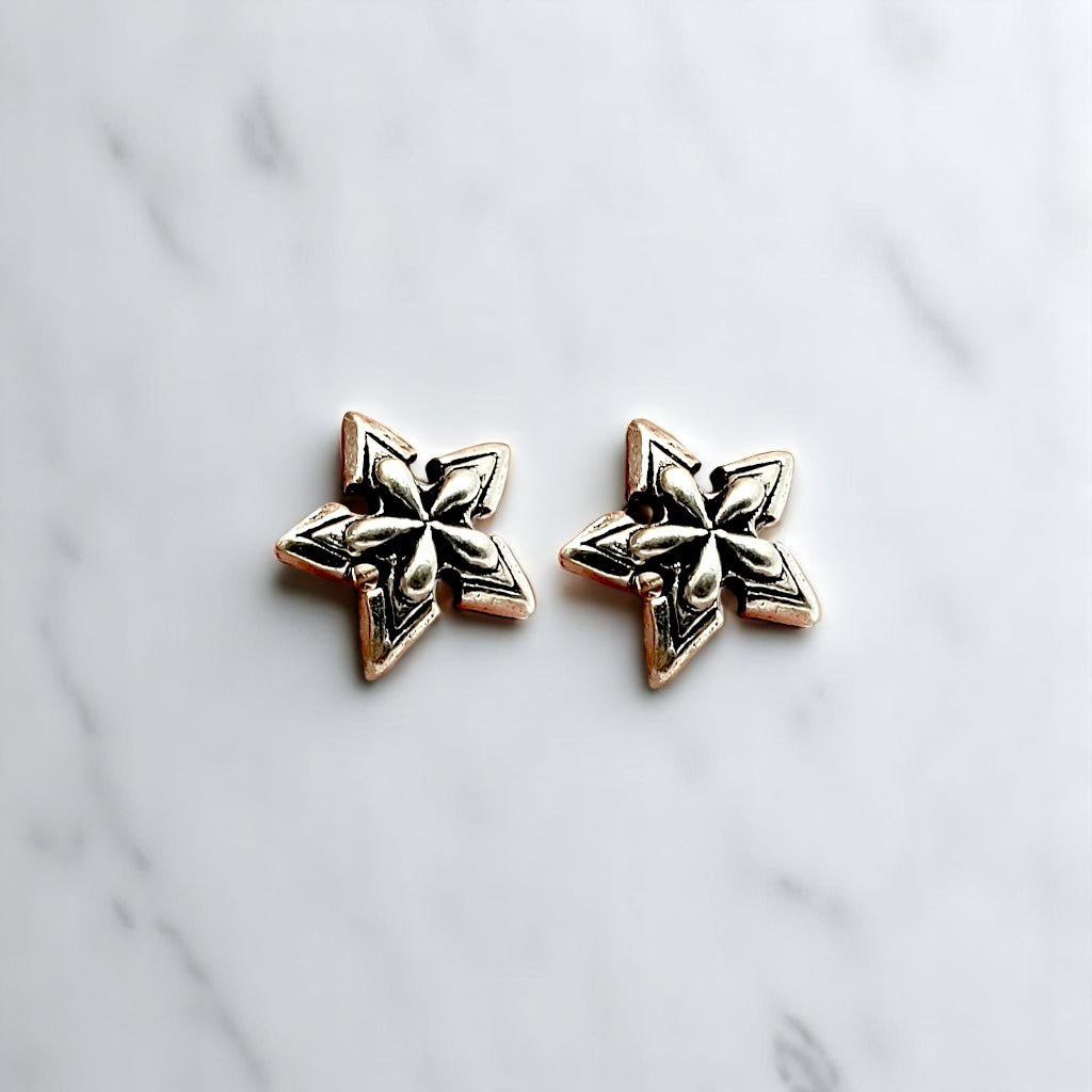 These unique star-shaped stud earrings are a conversation starter. The oxidized silver finish and intricate design make them a truly one-of-a-kind accessory.