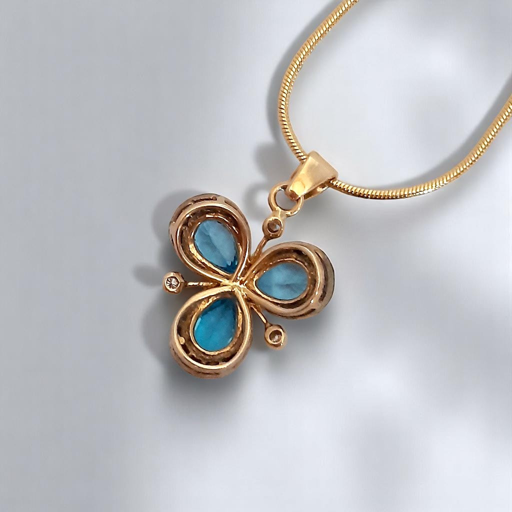Celebrate beauty in full bloom with the Butterfly Bloom Crystal Necklace. Crafted with intricate detail, this pendant showcases deep blue, teardrop-cut stones that mimic fluttering wings. A perfect symbol of growth, freedom, and elegance for women who love nature-inspired luxury