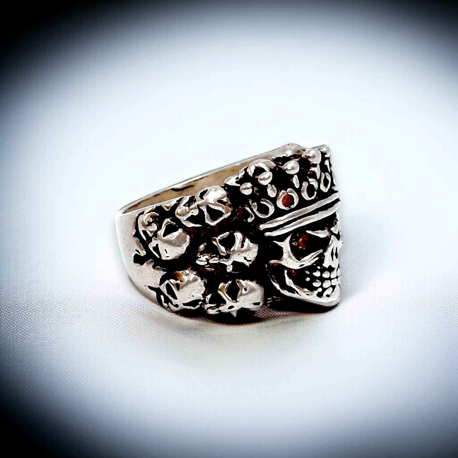Rule with fearless style in the Crowned Skull Sovereign Ring, a bold statement piece crafted in solid 925 sterling silver. Featuring an intricately carved crowned skull surrounded by gothic motifs, this ring speaks of rebellion, power, and unshakable attitude. Its antique finish and rugged details make it the ultimate accessory for the modern-day outlaw or biker soul.