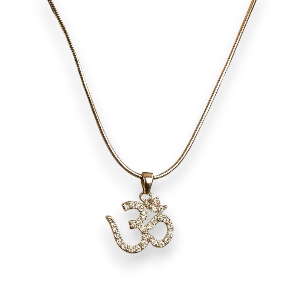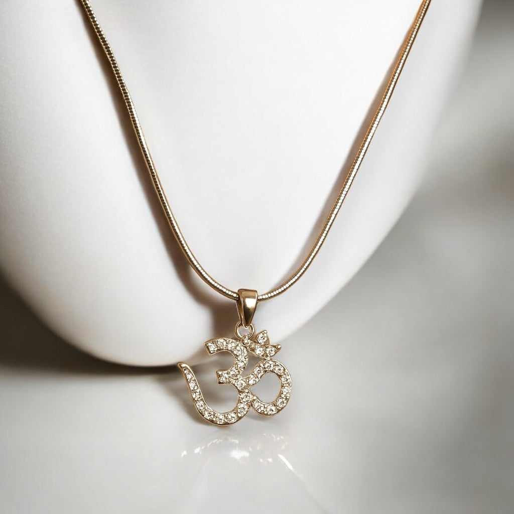Embrace spirituality and elegance with this stunning Om symbol pendant necklace for women. Featuring a delicately crafted Om charm adorned with shimmering crystals, this piece blends sacred symbolism with a touch of glamour. Suspended from a sleek gold-tone chain, it's perfect for those who want to wear their beliefs with style.