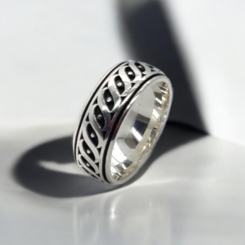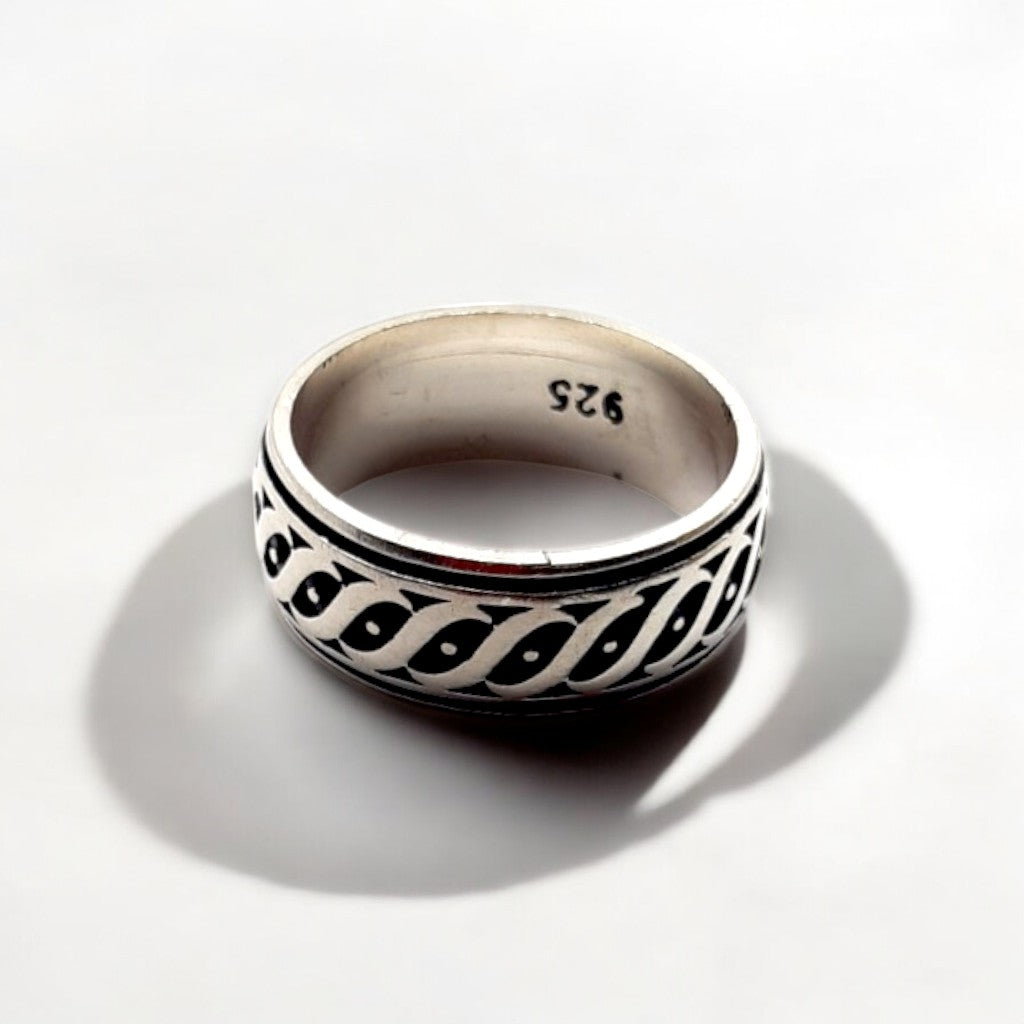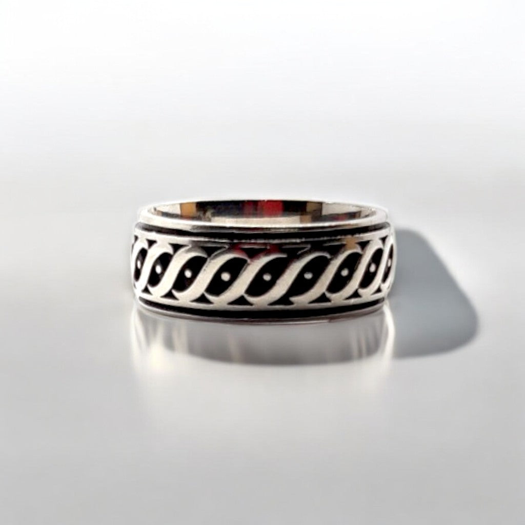 Claim your dominion with this commanding Double Chain Ring Band. Two interwoven chains, each a symbol of power and control, adorn a substantial band. This ring is for the man who leads, who inspires, who defines his own destiny.