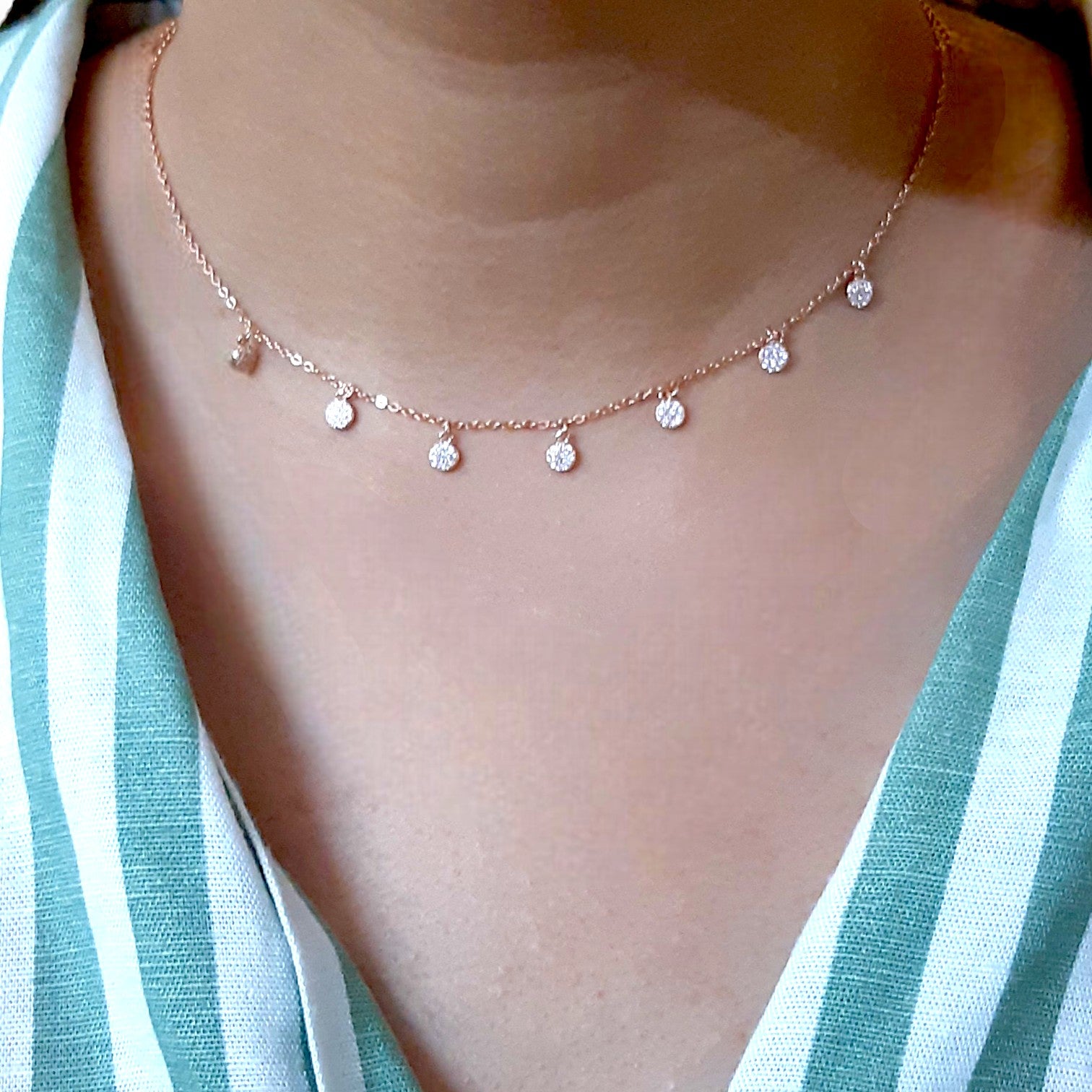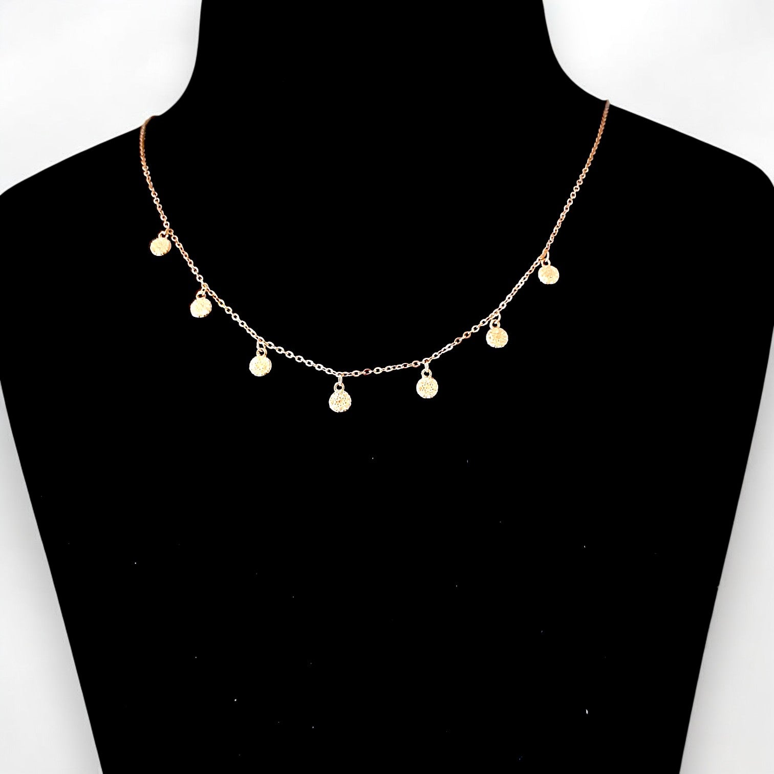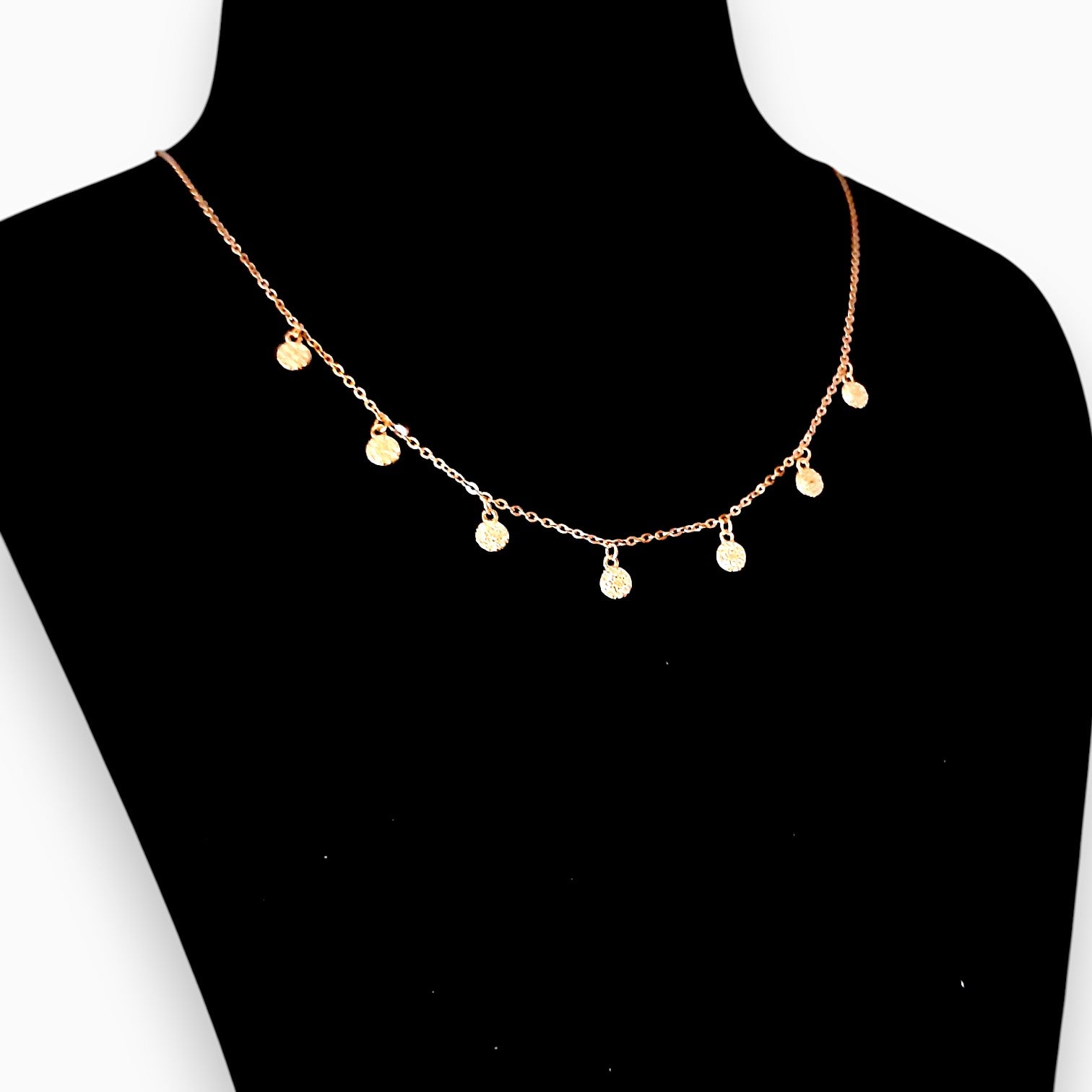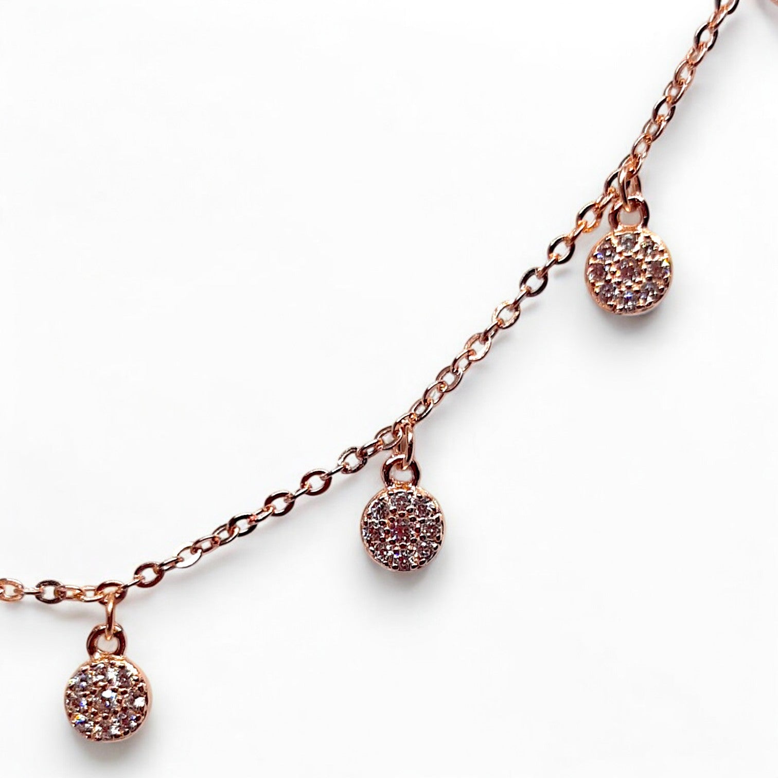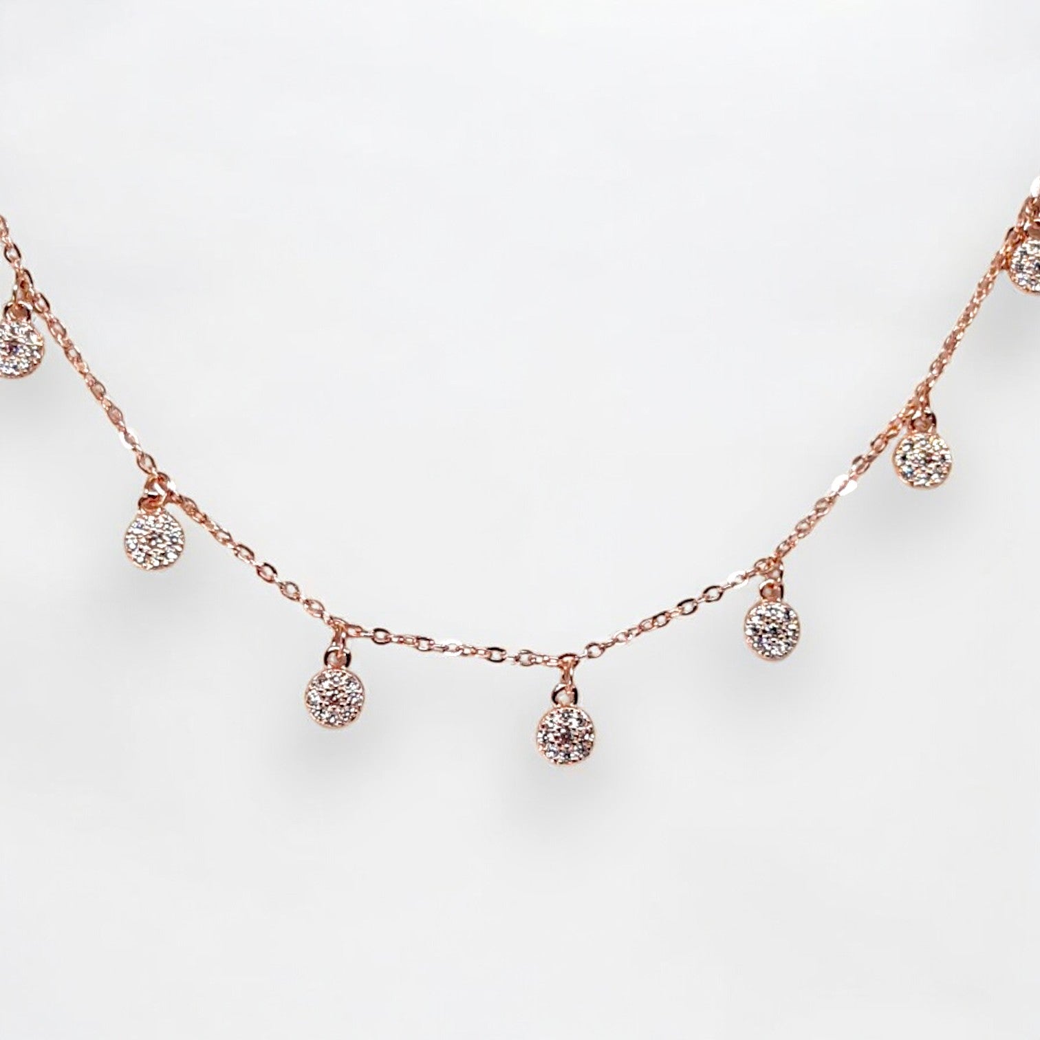 Add a touch of sparkle to your ensemble with the Glistening Orb Necklace. This stunning design features five radiant, crystal-encrusted orbs suspended along a delicate rose gold chain. Each orb captures the light, creating a captivating shimmer that will turn heads wherever you go. Perfect for both everyday wear and special occasions, this necklace brings a refined, elegant flair to any outfit. Whether worn alone for a minimalist look or layered with other pieces, it’s sure to become a favorite in your jewelry collection.