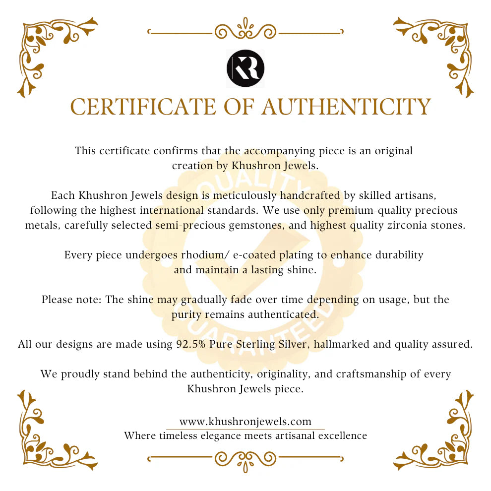 This website is operated by Khushron Jewels. Throughout the site, the terms “we”, “us” and “our” refer to Khushron Jewels. Khushron Jewels offers this website, including all information, tools and Services available from this site to you, the user, conditioned upon your acceptance of all terms, conditions, policies and notices stated here.